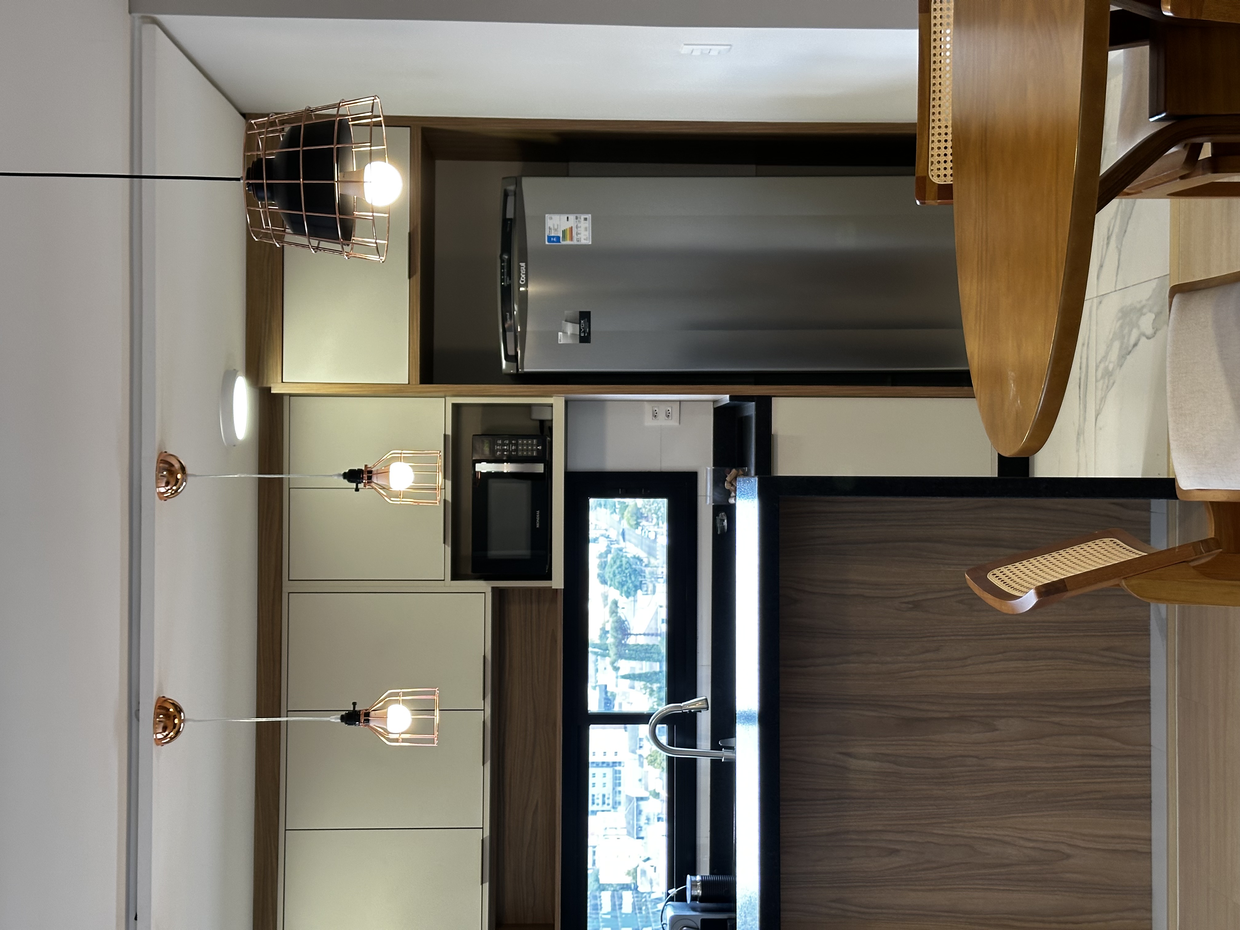(forno elétrico, forno microondas, geladeira, cooktop, cafeteira)
