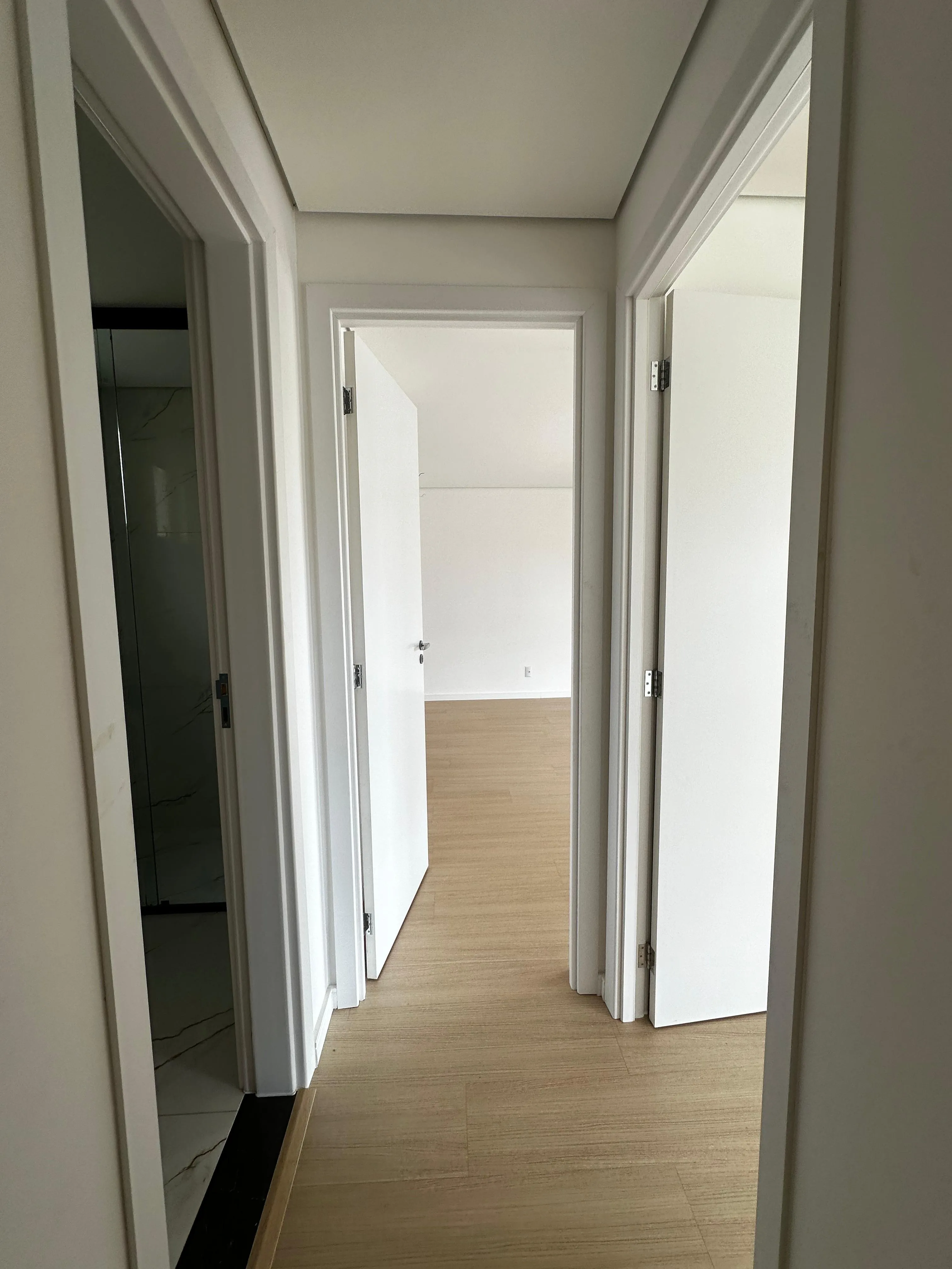 - Acabamentos refinados em porcelanato e piso laminado;