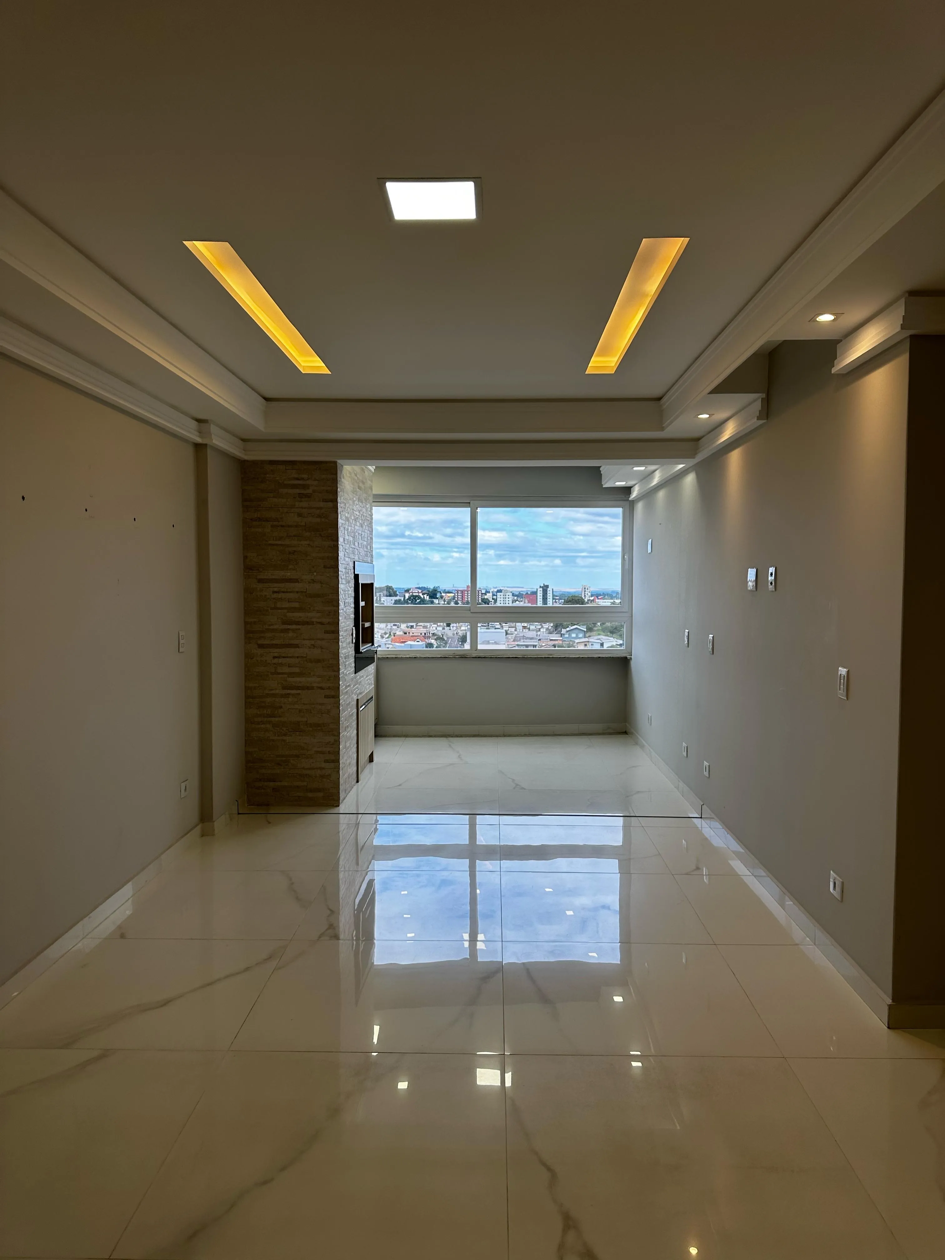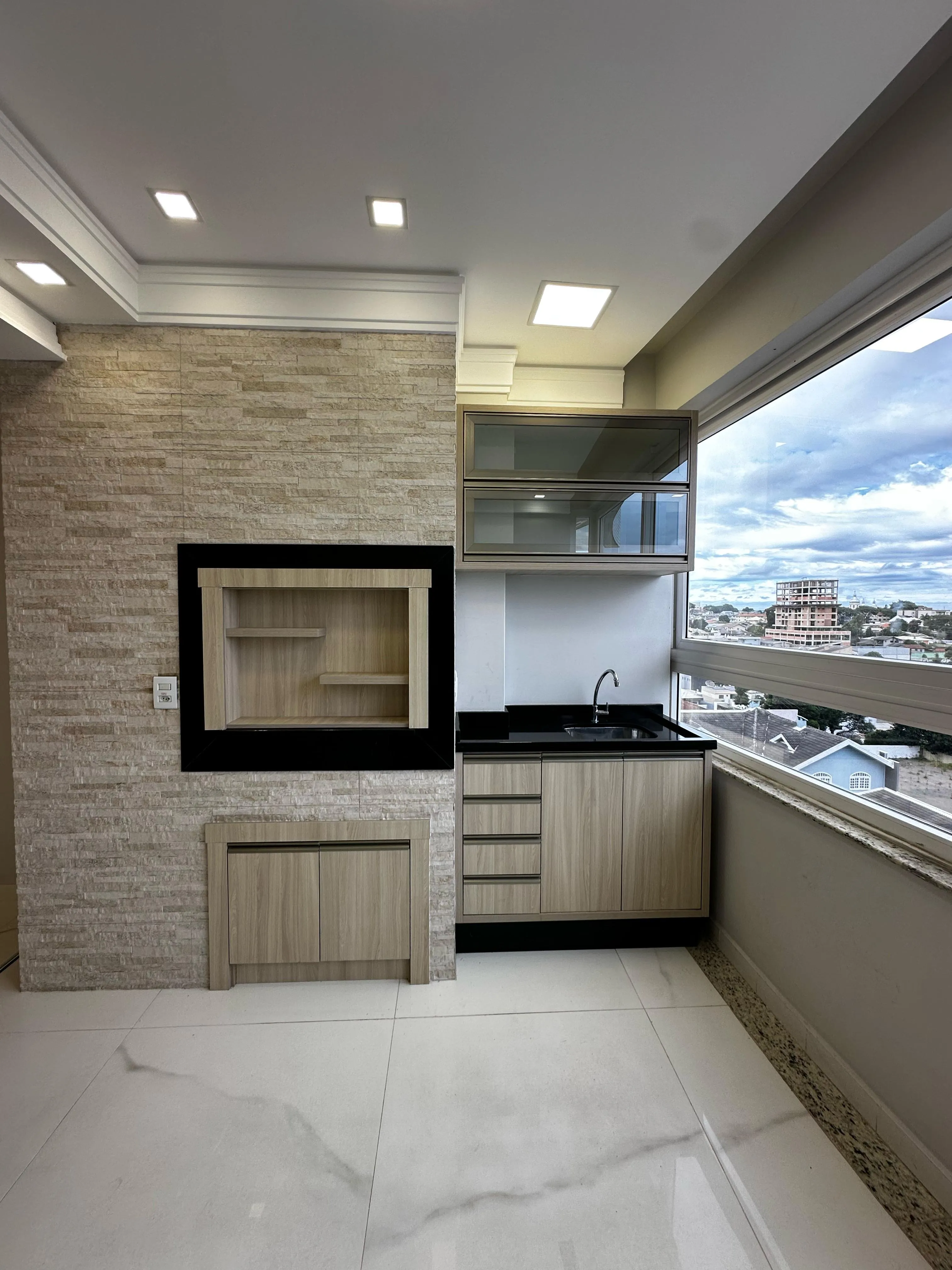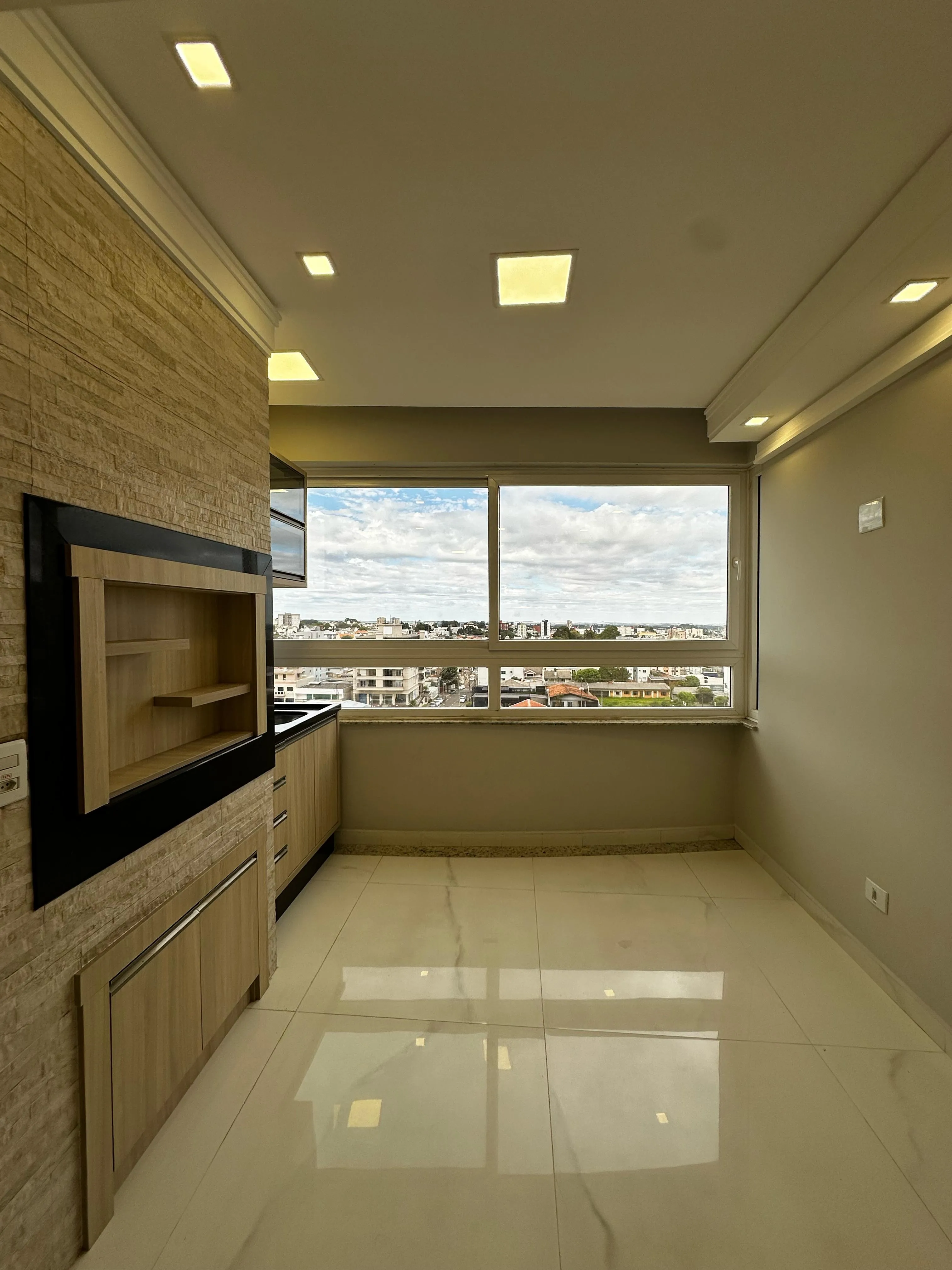 🛋️ Sala de estar integrada com espaço gourmet e churrasqueira