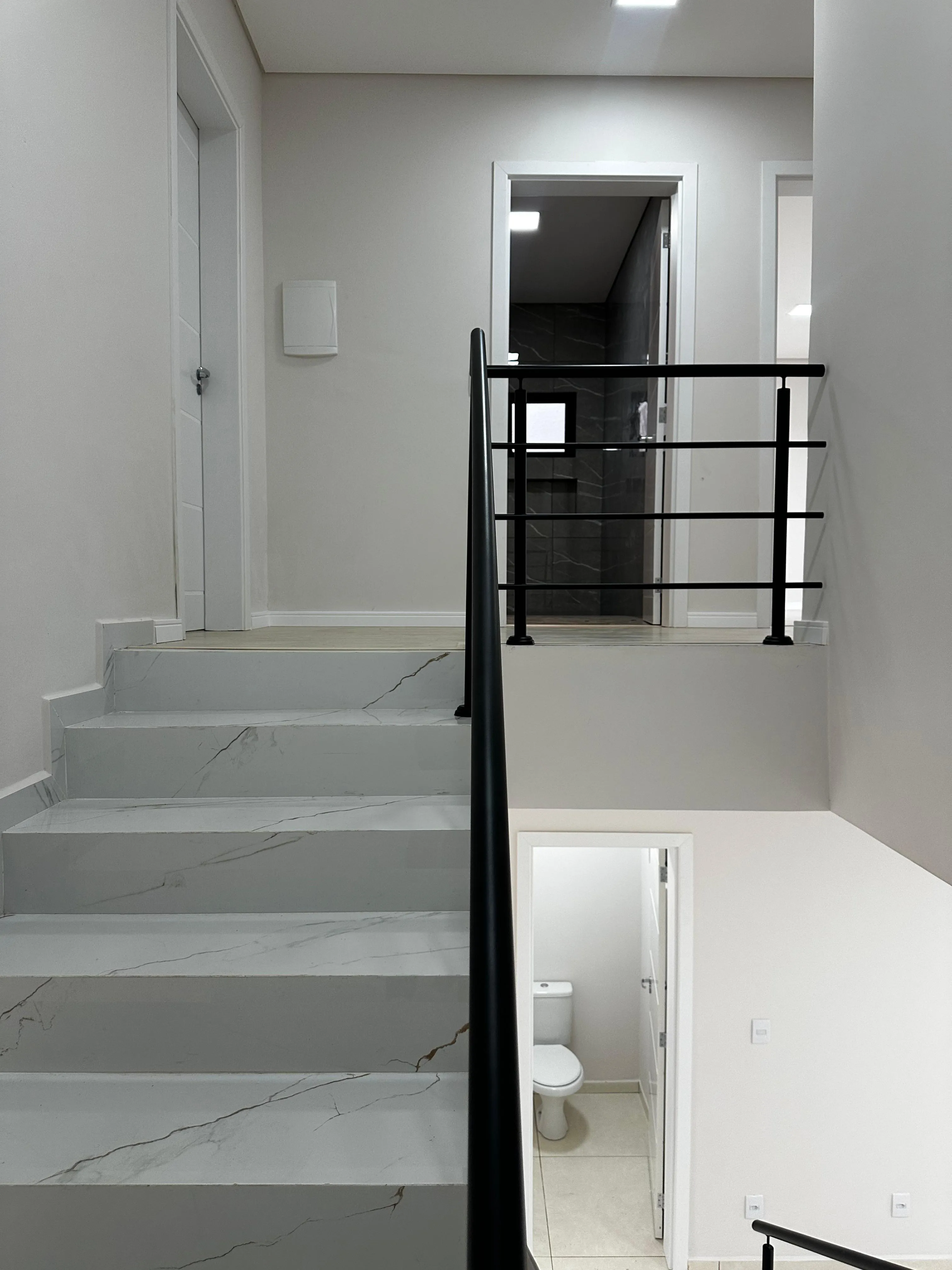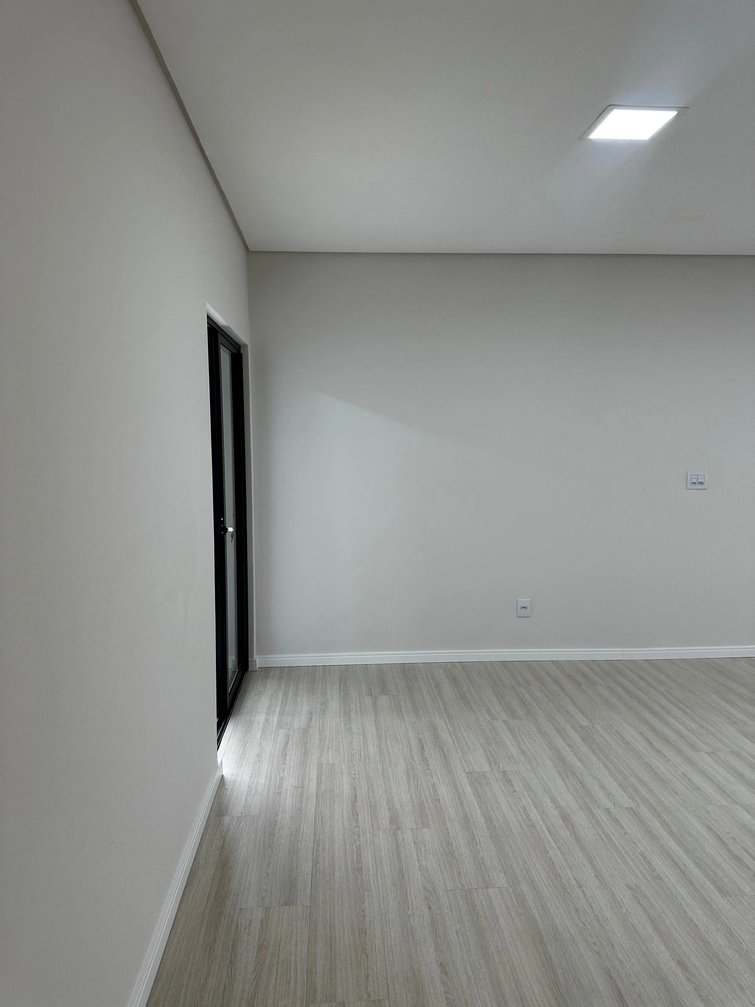 Acabamentos de alto padrão com piso laminado, porcelanato e detalhes em gesso, proporcionando um