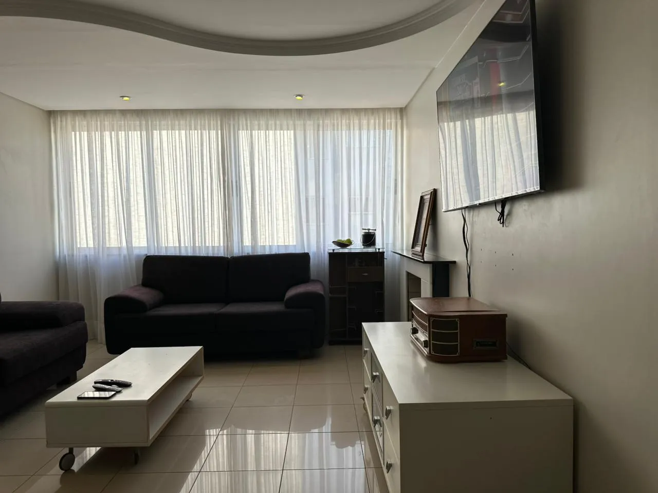 - Sala de estar com lareira integrada à copa