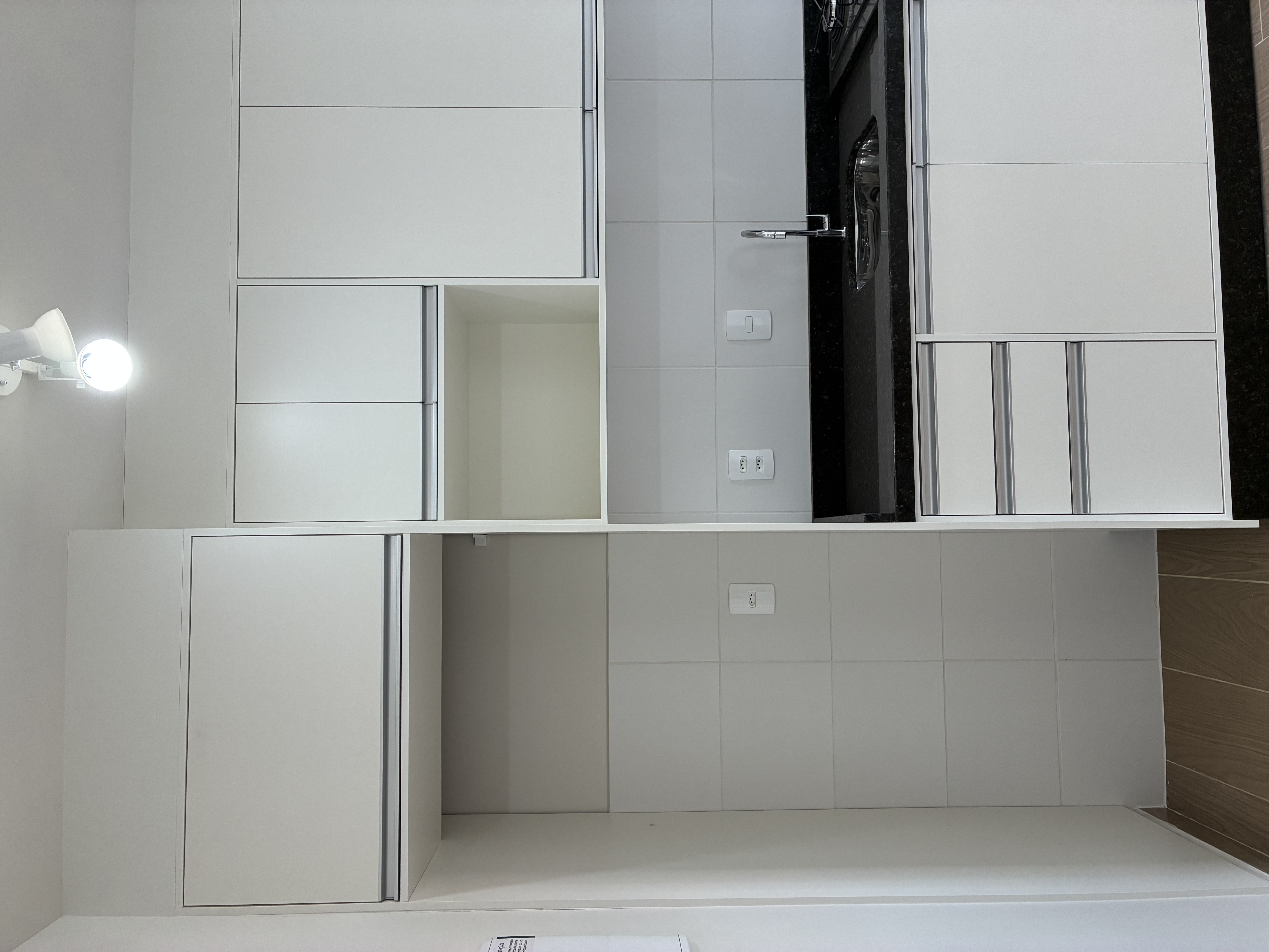* Cozinha com cooktop e armários planejados.