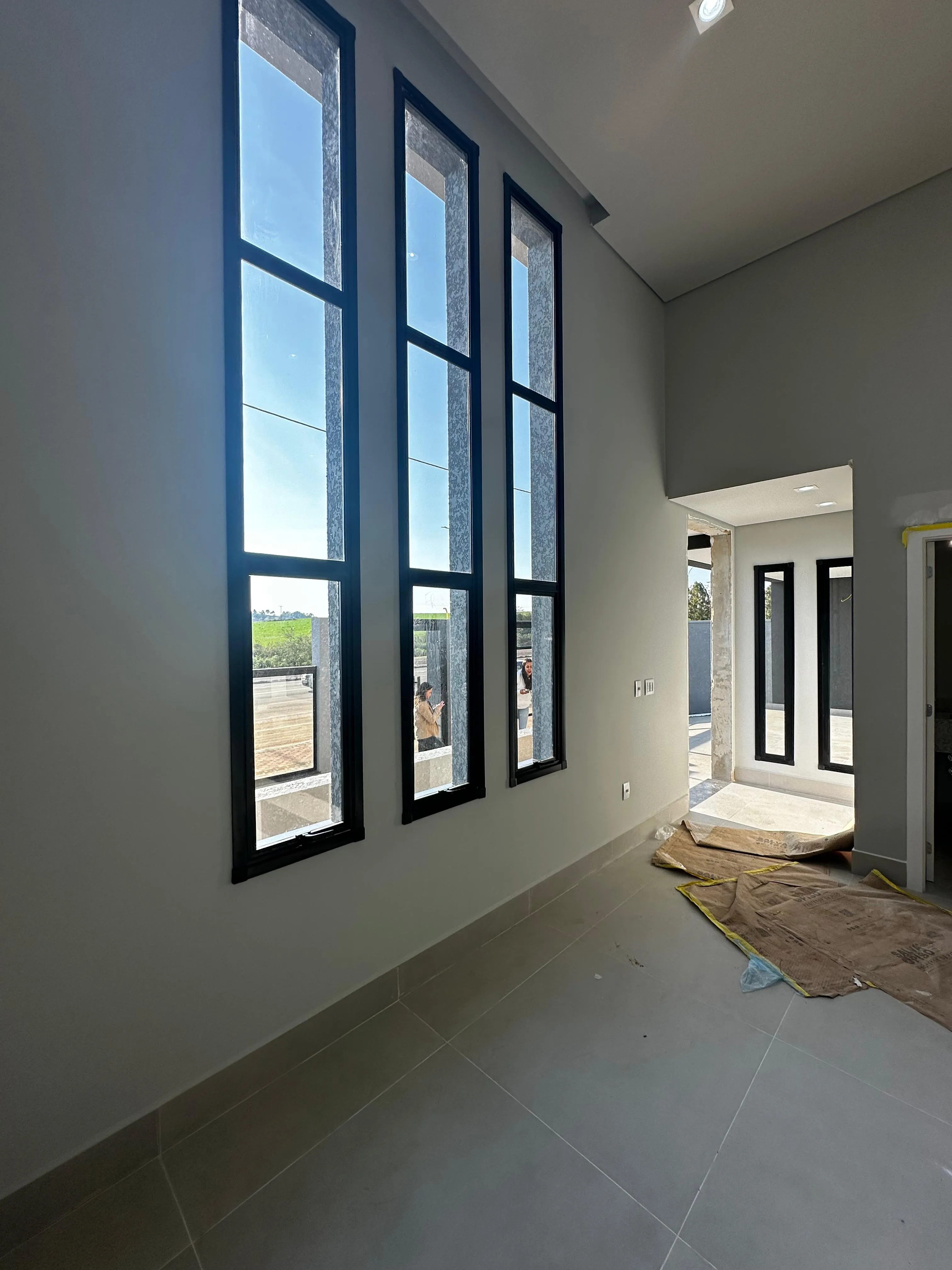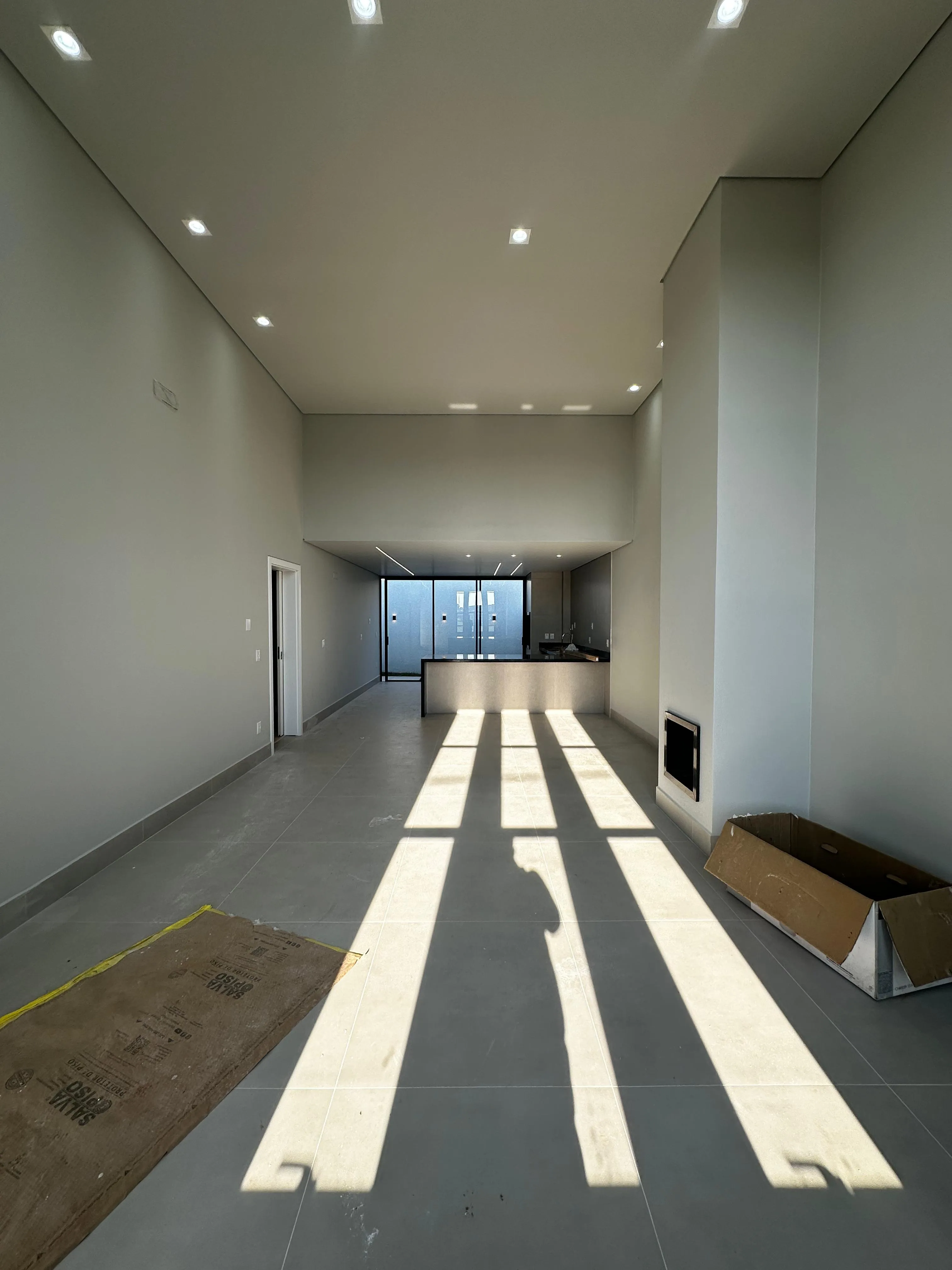 Sala com Pé Direito Alto: Com lareira, proporcionando um ambiente acolhedor.