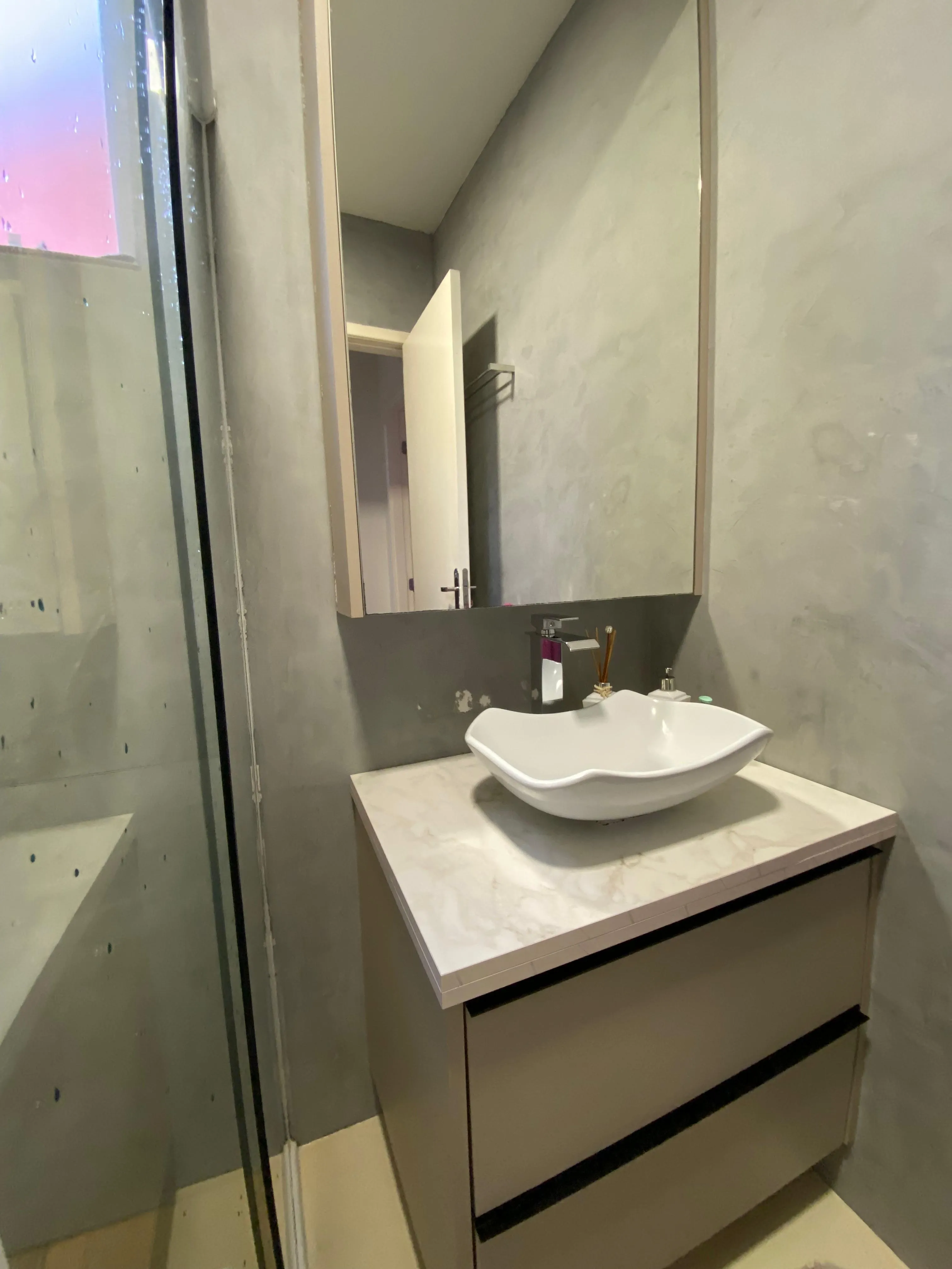 • Banheiro completo, com box, armário e torneiras com água quente
